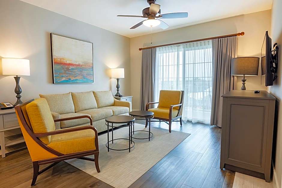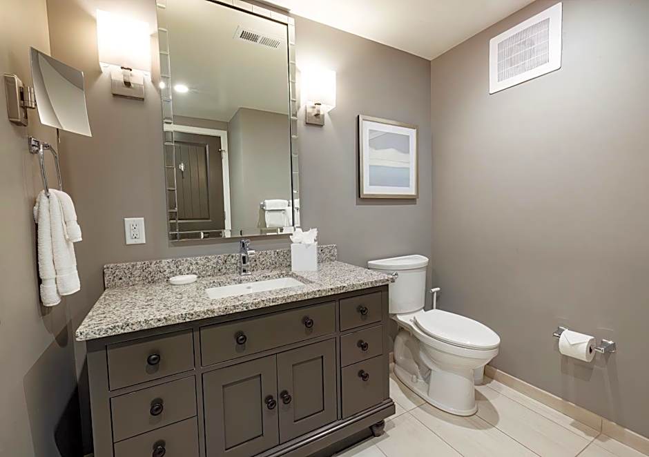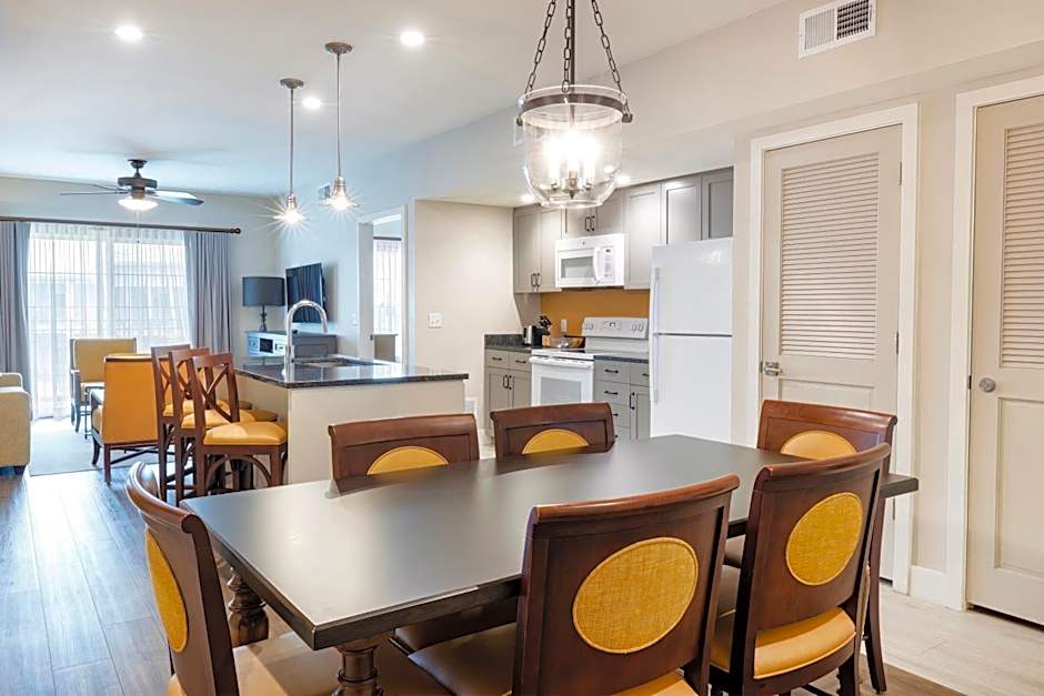 This suite has a sofa bed, dining area, full kitchen, and 2 private bathrooms.